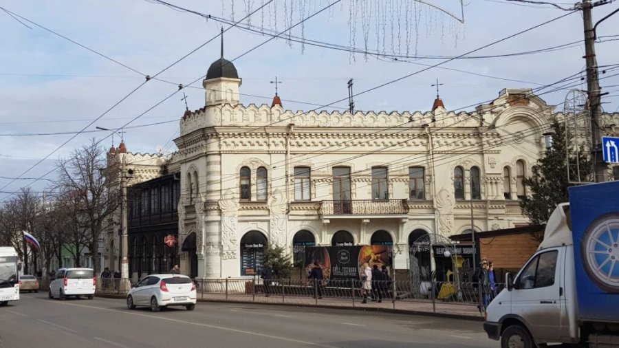 Центр Симферополя украшает «дом с драконами». Изображённые на фасадах симпатичные ящеры вот уже второй век охраняют гастрономические обычаи «города пользы». В XIX веке первый этаж, обрамлённый чугунными кружевами, занимала «Губернская шашлычная», которую рекомендовали все путеводители. В советское время здесь располагался ресторан «Южный». Его фирменным блюдом были колбаски по-симферопольски. В рамках празднования 200-летия крымской столицы в здании открыли новомодную пиццерию. Она органично впитала традиции всех предшественников и по сей день радует не только пышной пиццей, но и правильными колбасками, а также шикарной сборной солянкой.