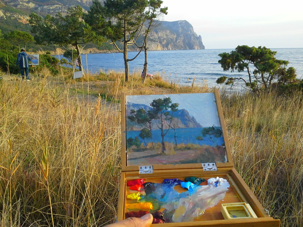 – После знакомства с мастерской и рабочим местом художника отправляемся на берег моря с этюдниками. Здесь, среди природных красот, участники смогут попробовать свои силы в написании пейзажей небольшого формата. В ходе пленэра пишем с натуры на берегу моря, в посёлке, а также выезжаем на микроавтобусе в красивые места – Бахчисарай, Балаклаву, Инкерман и на природные ландшафты во время цветения. Несколько холстов создаём на базе в формате мастер-класса.