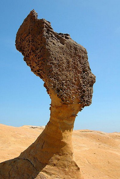 Ещё одна Нефертити живет в заповеднике Йелиу на острове Тайвань. Здесь на небольшом участке побережья расположился огромный парк нерукотворных статуй. Созерцание дивного пейзажа даёт волю фантазии и обеспечивает шквал положительных эмоций.