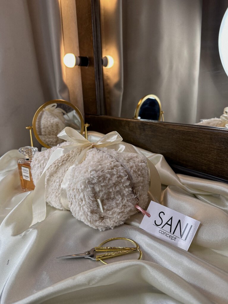 Махровые и меховые, из бархата, атласа, хлопка, муслина и эко-кожи, в клетку и цветочек – эти и другие варианты можно выбрать среди продукции бренда Sani Concept, который создаёт косметички и папки.