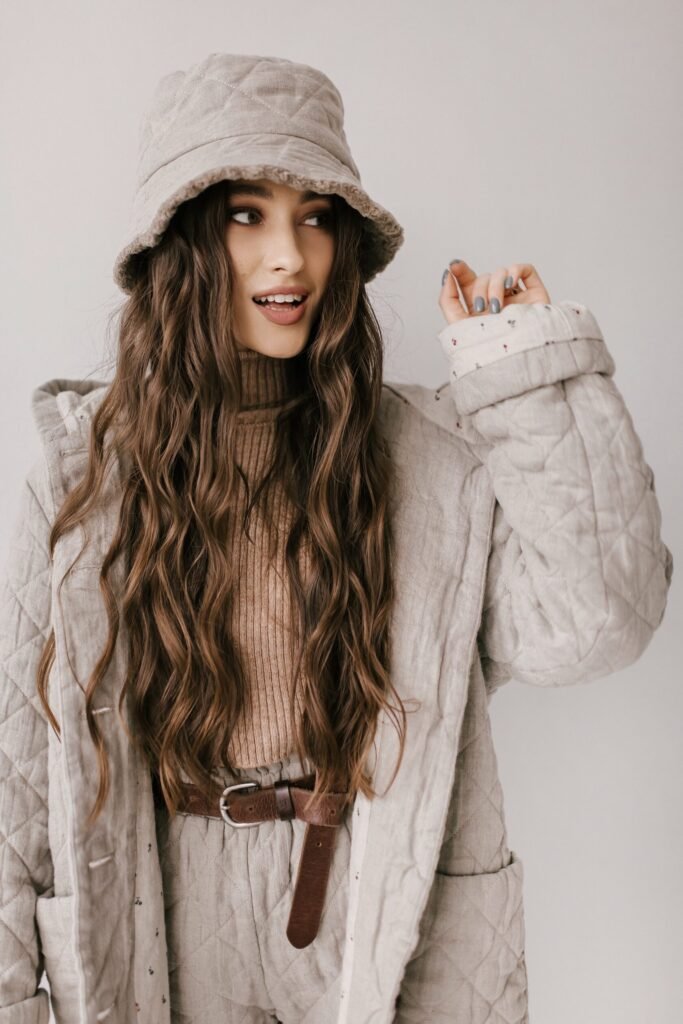 Кстати, мы не смогли пройти мимо бежевой стёганой панамы изо льна. Говорят, такой аксессуар будет актуален до тех пор, пока мы окончательно не повзрослеем.