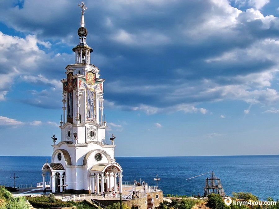 Находится в поселке Малореченское на Южном берегу Крымского полуострова. Маяк состоит из трех частей: верхняя часть храма является действующим маяком; средняя часть – действующий храм; нижняя часть – музей морских катастроф.