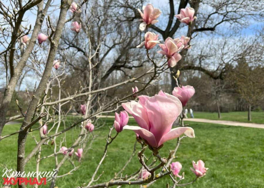 31 марта 2024 В Симферополе в ботаническом саду КФУ имени В. И. Вернадского во всю цветет магнолия. Нежно-розовые и белые цветы радуют посетителей и дарят незабываемый аромат и настроение.