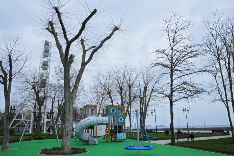 Так, гостей и жителей курортного города набережная порадует светомузыкальным сухим фонтаном, детскими площадками, скамейками, урнами и уличными фонарями.