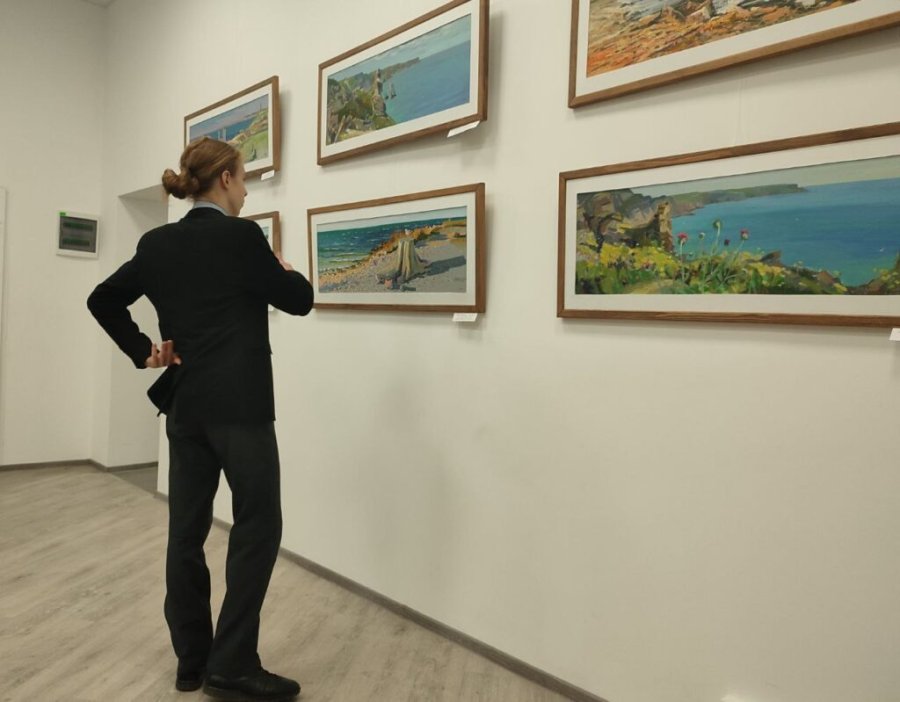 В экспозицию вошли десятки живописных работ, большая часть которых художник выполнили на пленэре в окружении любимых воспитанников Евпаторийской детской художественной школы имени Юрия Волкова, в которой преподаёт уже 20 лет.