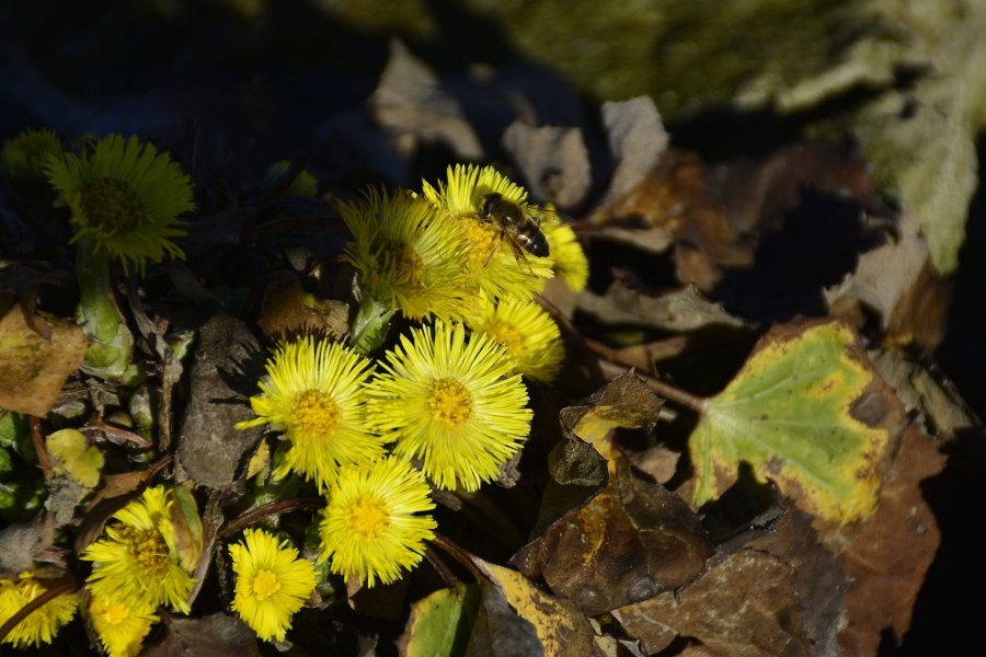 Ромашки, мать-мачеха и мята обнаружились на пересохшем Партизанском водохранилище 2 января. Над ними кружили пчёлы, которых, похоже, совсем не смущало, что на дворе второй месяц зимы.