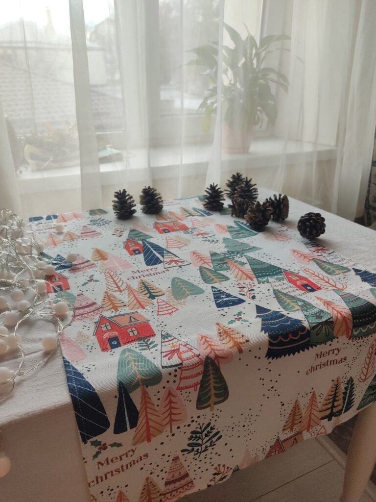 Один из атрибутов зимних праздников – новогодний текстиль. Лариса Спиридонова шьёт из хлопка и льна скатерти, салфетки, дорожки, сапожки для подарков и юбочки для ёлки.