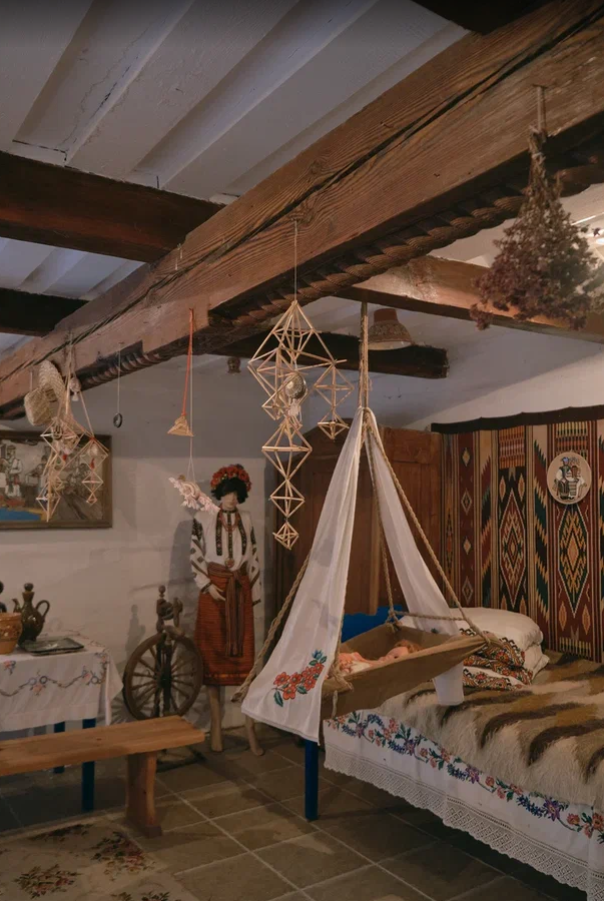 – Для нас это прежде всего духовный проект. Каждый дом полон вещей моих предков. Этот рушник вышивала моя прапрапрапрабабушка Соломия, которая умерла в 1837 году. Такие рушники-божники бережно сохраняются и передаются по наследству. Когда мама узнала, что мы открываем музей, передала его нам. Особенность рушника в том, что он вышит шерстяными нитками, окрашенными природными красителями – соком свёклы, щавеля, моркови. А вот картина, которую моя мама вышивала при лучине в погребе, где её прятали от фашистов, чтобы не угнали в Германию, – рассказывает Татьяна.