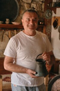 В мастерской он проводит мастер-классы, на которых все желающие могут собственноручно изготовить медные украшения, например, браслет. Здесь же выставлена на продажу готовая продукция. Особенно популярны джезве – специальные сосуды для варки кофе. Рустем – большой любитель традиционного крымскотатарского угощения. Он с удовольствием делится с гостями секретами приготовления благородного напитка.