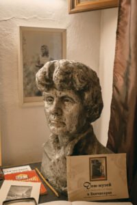 За многие годы дом насыщался предметами. Фотографии, картины, скульптуры, книги, личные вещи и документы – каждый артефакт по-своему раскрывает духовный мир хозяев и рассказывает об их замечательных друзьях, среди которых Борис Пастернак и Анастасия Цветаева, Александр Куприн и Мария Волошина, Василий Симов-Гирей и Григорий Петников, Марк Шагал, Богаевский Константин и его жена Жозефина, скульптор Ольга Мануйлова. Все эти люди, яркие представители отечественной интеллигенции, «цемент нации», почитали за честь навестить бахчисарайский «приют спокойствия, трудов и вдохновенья».