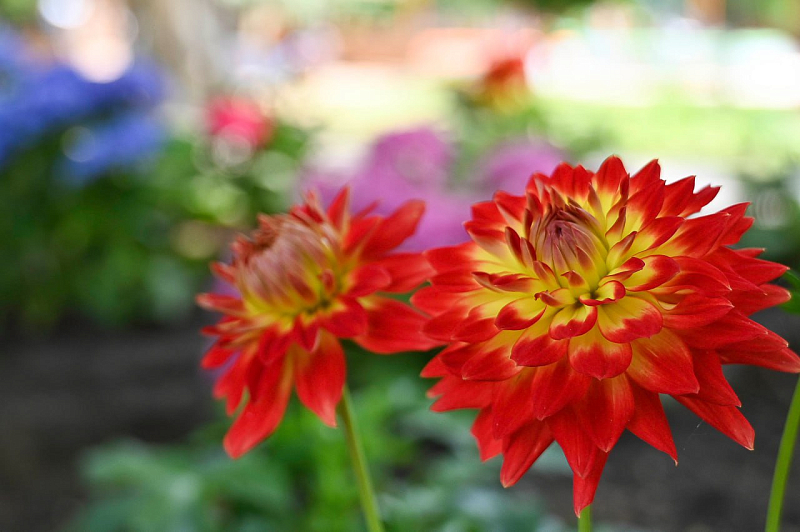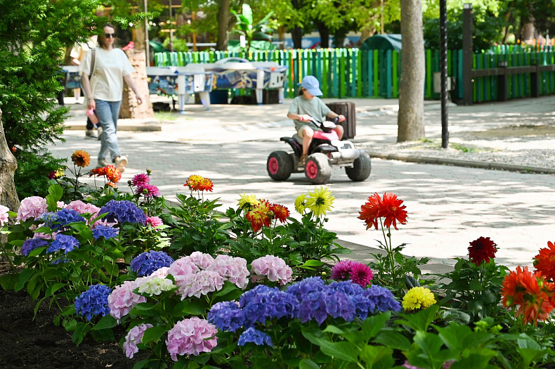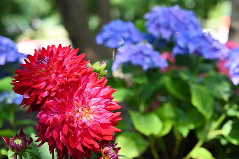 Ещё 150 кустов георгин высадили в парке им. Гагарина в Симферополе. Разноцветные бутоны красиво украсили клумбы у пруда. Эти посадки стали частью работ по обновлению зелёных зон парка: всего за последний месяц работниками «Парков столицы» высажено более 500 кустов гортензий и георгин.