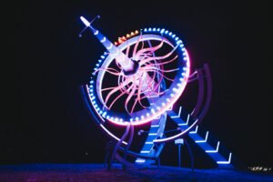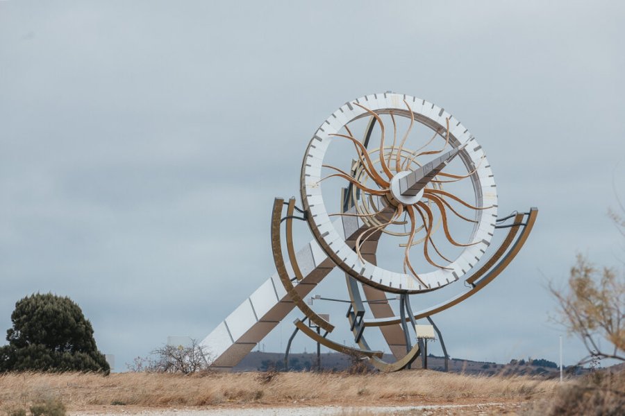 Вертикальные солнечные часы размерами 9 на 15 метров, сделанные из стали и алюминия, стали воплощением мысли о быстротечности времени. Их циферблатом служит разделенное на 60 сегментов стальное кольцо диаметром более 6,5 метров.