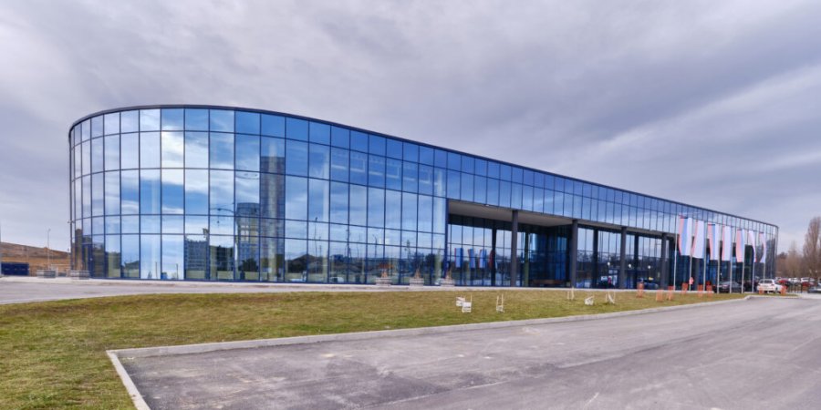 Долгожданный проект начали строить в Симферополе в 2017 году. Прямоугольное здание с закруглёнными углами высотой 14 м и площадью 18,7 тыс. кв. м возвели быстро, но обустройство и установка ливневой канализации, о которой забыли в первоначальном проекте, немного задержали сдачу объекта.
