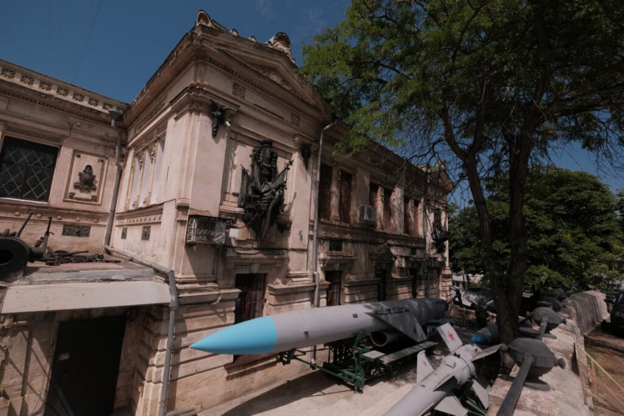 Архитектурный облик здания Музея Черноморского флота настраивает на высокий, торжественный лад. Классический стиль прекрасно дополняет чугунное и бронзовое литьё на фасадах – художественно исполненные военно-морские атрибуты: носовые и кормовые части кораблей, якоря и цепи, пушки и ядра, колонны и знамёна.