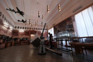 Эта дизель-электрическая подлодка сама по себе история. Она сошла со стапелей в 1961 году, несла службу на Северном, потом на Черноморском флоте, где принимала участие в испытаниях нового оружия – ракетоторпед. Для этого подлодку модернизировали, и из-за характерных обводов корпуса она получила среди специалистов название «двустволка». Попасть внутрь подводного корабля пока нельзя. Реалии службы подводников детально отражает инсталляция «В отсеках».