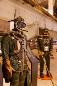 На огромных плазменных экранах под железобетонными сводами разворачивается эпопея холодной войны. А в мрачноватом коридоре смоделирован элемент апокалипсиса: звуковая и визуальная имитация движения ударной волны, сопровождающей ядерный взрыв. Голос из динамика сообщает о резком повышении радиационного фона. Мигают красные цифры на табло, раздаётся звук задраиваемых люков, и на несколько мгновений ты остаёшься один на один с фигурами в химзащите… Впечатления зашкаливают!