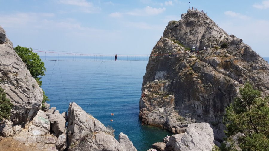 Скала в Симеизе высотой 51 м была отторгнута от основного массива крымских гор штормами и ветром много миллионов лет назад. Кроме пешего маршрута по лестницам, на вершину скалы можно добраться по подвесному мосту. Инструктор закрепляет страховку и отправляет вас в путь, пролегающий над морем на высоте 30 м. С вершины скалы Дива открывается изумительный вид на гору Кошка, Ай-Петри и холмистый Симеиз.