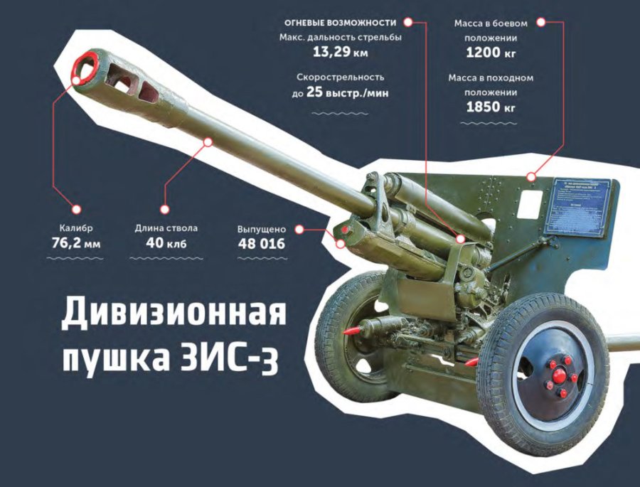 По праву самым массовым артиллерийским орудием советской страны можно считать пушку ЗИС-3, которую разработал конструктор Василий Грабин. За годы войны было выпущено 103 тысячи единиц этих пушек. Она стала лучшим образцом надёжности и технологичности для своего времени. С учётом того, что многие дивизионные артиллеристы не имели достаточной подготовки и учились в боевых условиях, ЗИС-3, отличавшаяся малым весом, простотой и удобством в использовании, помогала неопытным солдатам выполнять самые сложные боевые задачи. Пушка Грабина стала использоваться на фронтах Великой Отечественной войны в 1942 году и была весьма эффективна против немецких САУ, лёгких и средних танков, а также могла вступить в ближний бой с «Тиграми». Её преимущество заключалось в том, что вести огонь можно было любыми снарядами калибра 76,2 мм, что упрощало артиллерийское снабжение. Кроме того, расчёт мог своими силами исправить поломки орудия, что тоже являлось несомненным достоинством пушки.