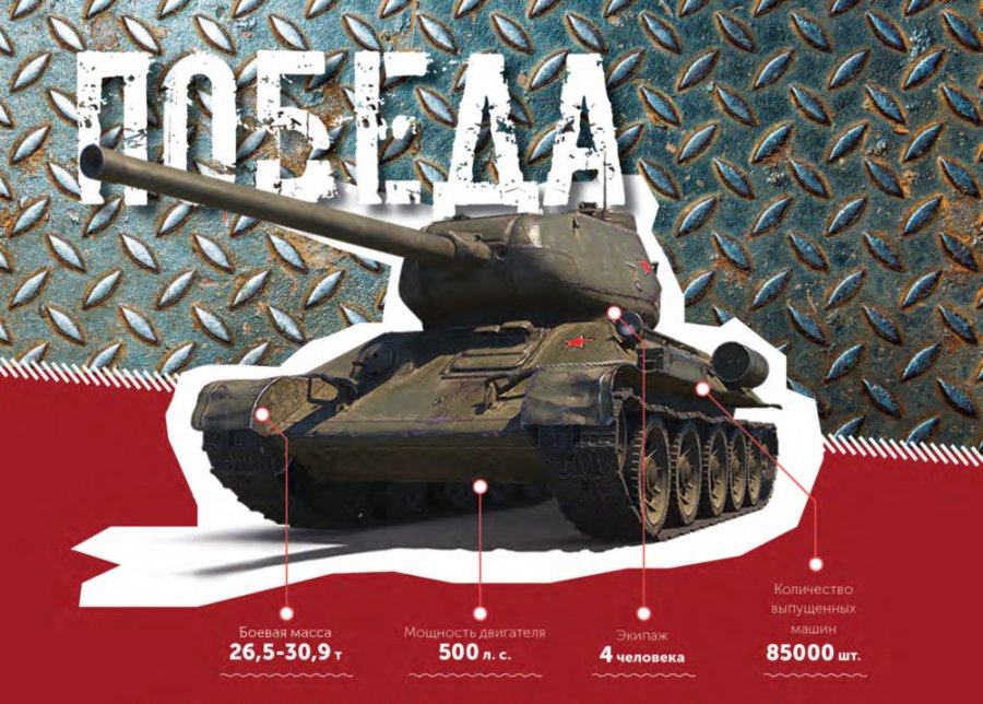 Чудо советской техники средний танк Т-34, созданный Михаилом Кошкиным, стал символом Победы и освобождения от немецко-фашистских захватчиков. Именно он стоит на постаментах во многих городах нашей страны. Производство танка началось в 1940 году на конвейере Харьковского паровозостроительного завода. За годы Великой Отечественной войны было выпущено 50 тысяч единиц этой боевой машины. Лучший танк мира, как называли его противники, отличался высокой манёвренностью, мощным вооружением, крепкой бронёй — и это в совокупности повергало врагов в ужас, они рассказывали, что снаряды отскакивали от Т-34 как горох. Причём технологическое превосходство советского танка оттачивалось в течение всей войны, и совершенство было достигнуто в модели Т-34-85. Танки отлично проявили себя в самых жестоких схватках, в том числе в знаменитой битве на Курской дуге. Этот средний танк великолепно подходил для атакующих действий при поддержке пехоты, выигрывал в подвижности и отличался неприхотливостью — механики могли устранять неисправности прямо в поле. При этом Т-34 превосходно справлялся с легко бронированными целями, пушечными расчётами и пехотой врага. Эта прославленная модель фигурирует во многих художественных фильмах о войне, в том числе в популярном польском сериале «Четыре танкиста и собака».