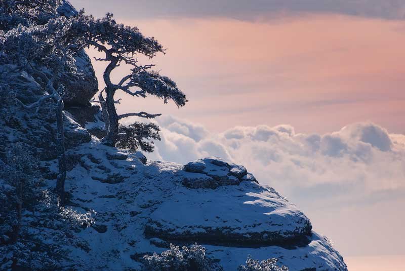 Зимнее крымское побережье — это ещё естественный курс ингаляционной аэротерапии, которую обеспечивает смесь солёного йодистого воздуха с фитонцидами хвойных деревьев.