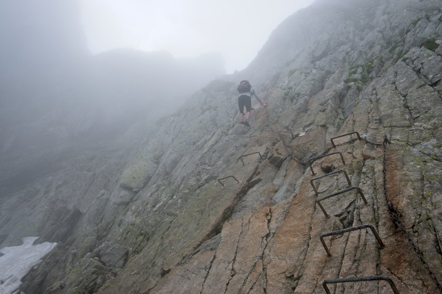 Отметим, что проходить виа феррату можно самостоятельно, но обязательно со спецснаряжением: каска, альпинистская (скалолазная) обвязка, страховка и амортизатор рывка стандарта EN958:2017 (это прошитые нитками петли, при срыве нитки рвутся, но при этом гасят рывок, что позволяет избежать переломов позвоночника). Если вы идёте с ребенком, вес которого меньше 40 кг, то нужна ещё и верхняя страховка или специальная полная детская обвязка.